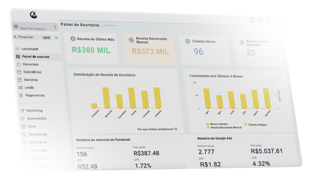 Automatize marketing, atendimento e gestão com estratégia jurídica aplicada.